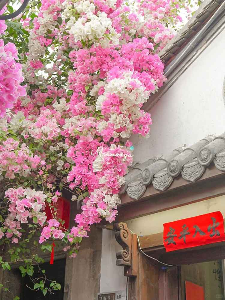 📸另一片粉色的三角梅在古井许愿那里,花很好看,就是旁边一直推销她家饮品,让人免费喝喝完必须把杯子放到店里面去